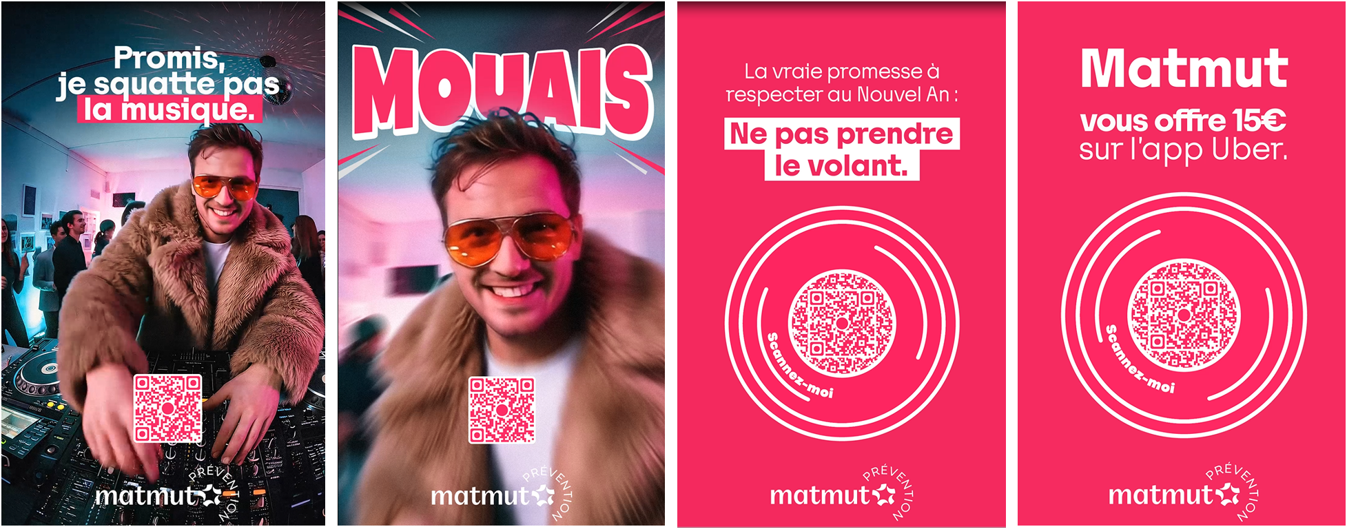 La Matmut et son agence Reech renouvellent les « Codes Promesses » pour assurer la sécurité des jeunes, la nuit du nouvel an. Une campagne de prévention des risques routiers qui transforme les promesses de soirées comme "Promis, je tunnel personne ce soir", "Promis, pas de story gênante"... en bons Uber d’une valeur de 15 € offerts à leurs émetteurs afin qu’ils ne prennent pas le volant et pour les aider à tenir la seule promesse qui compte vraiment : rentrer chez soi en toute sécurité.