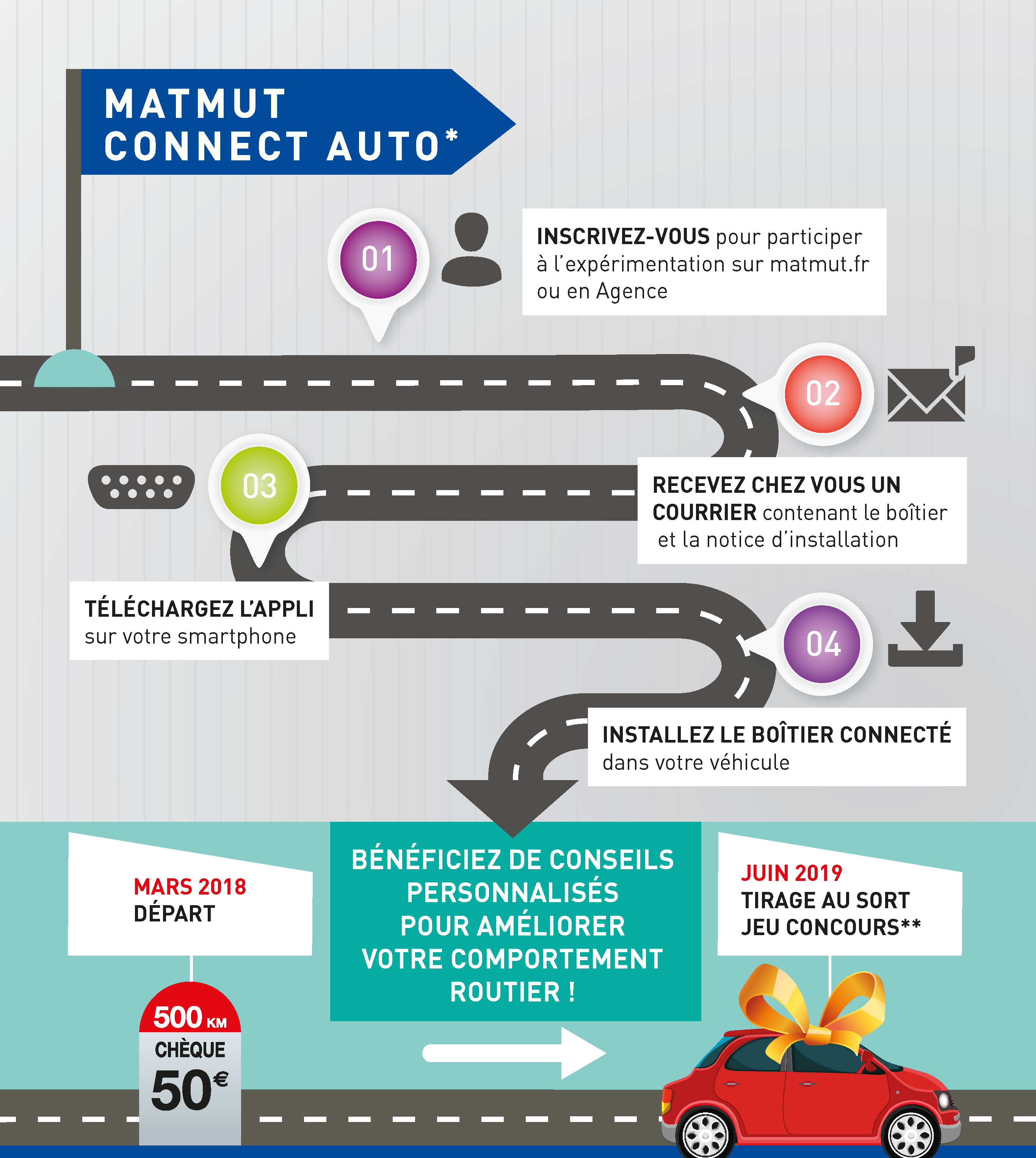 **Participation au tirage au sort réservée aux participants de l’expérimentation Matmut Auto Connect ayant un taux d’utilisation du boitier connecté supérieur à 95% sur la durée de l’expérimentation. Voir règlement du jeu.