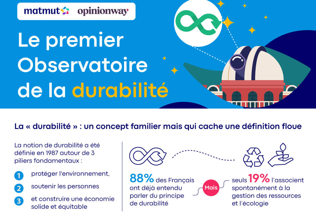 La Matmut et Opinionway lancent « l’Observatoire de la durabilité ». L’objectif est d’évaluer, tous les deux ans auprès d’une pluralité de publics, la perception de la durabilité, et d’identifier les leviers d’actions et les freins.