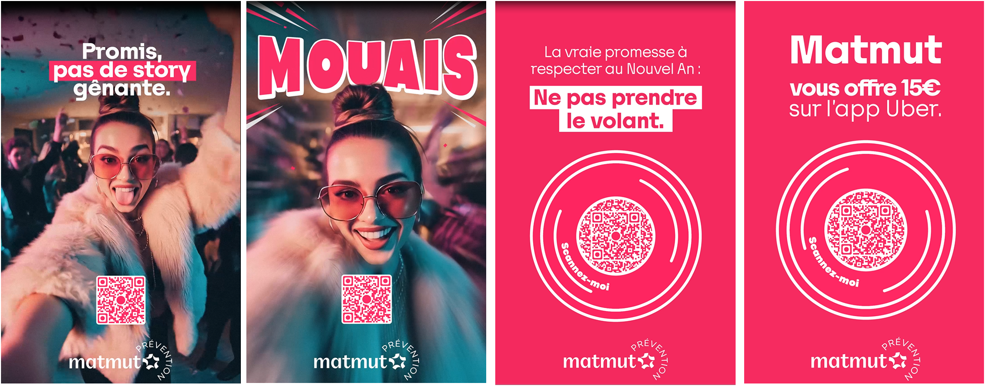 La Matmut et son agence Reech renouvellent les « Codes Promesses » pour assurer la sécurité des jeunes, la nuit du nouvel an. Une campagne de prévention des risques routiers qui transforme les promesses de soirées comme "Promis, je tunnel personne ce soir", "Promis, pas de story gênante"... en bons Uber d’une valeur de 15 € offerts à leurs émetteurs afin qu’ils ne prennent pas le volant et pour les aider à tenir la seule promesse qui compte vraiment : rentrer chez soi en toute sécurité.
